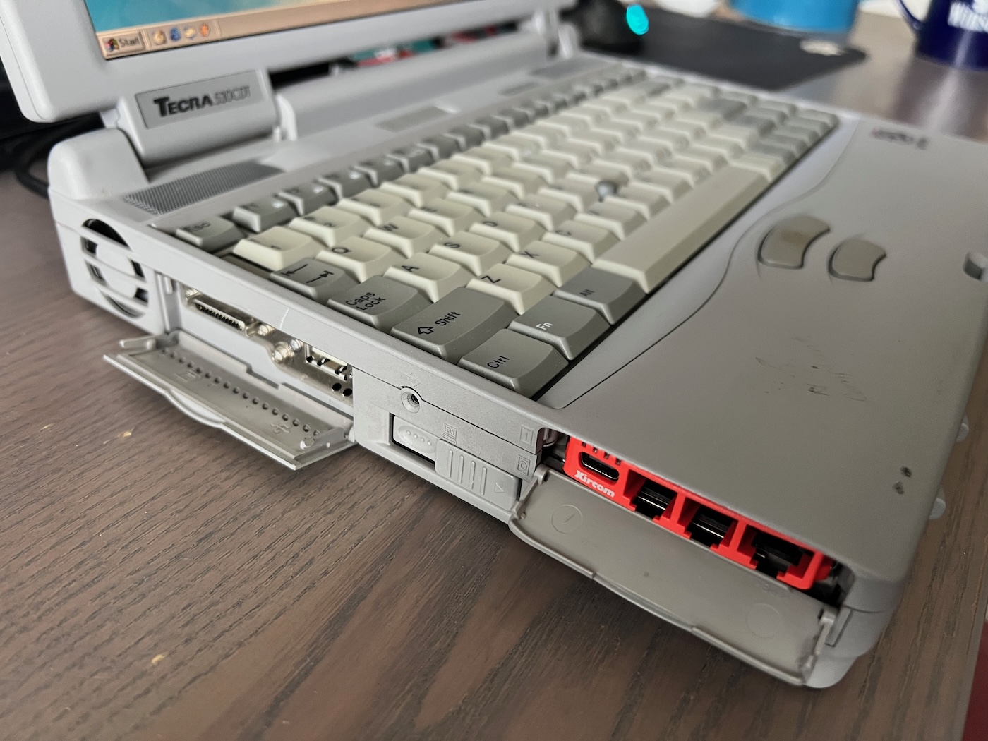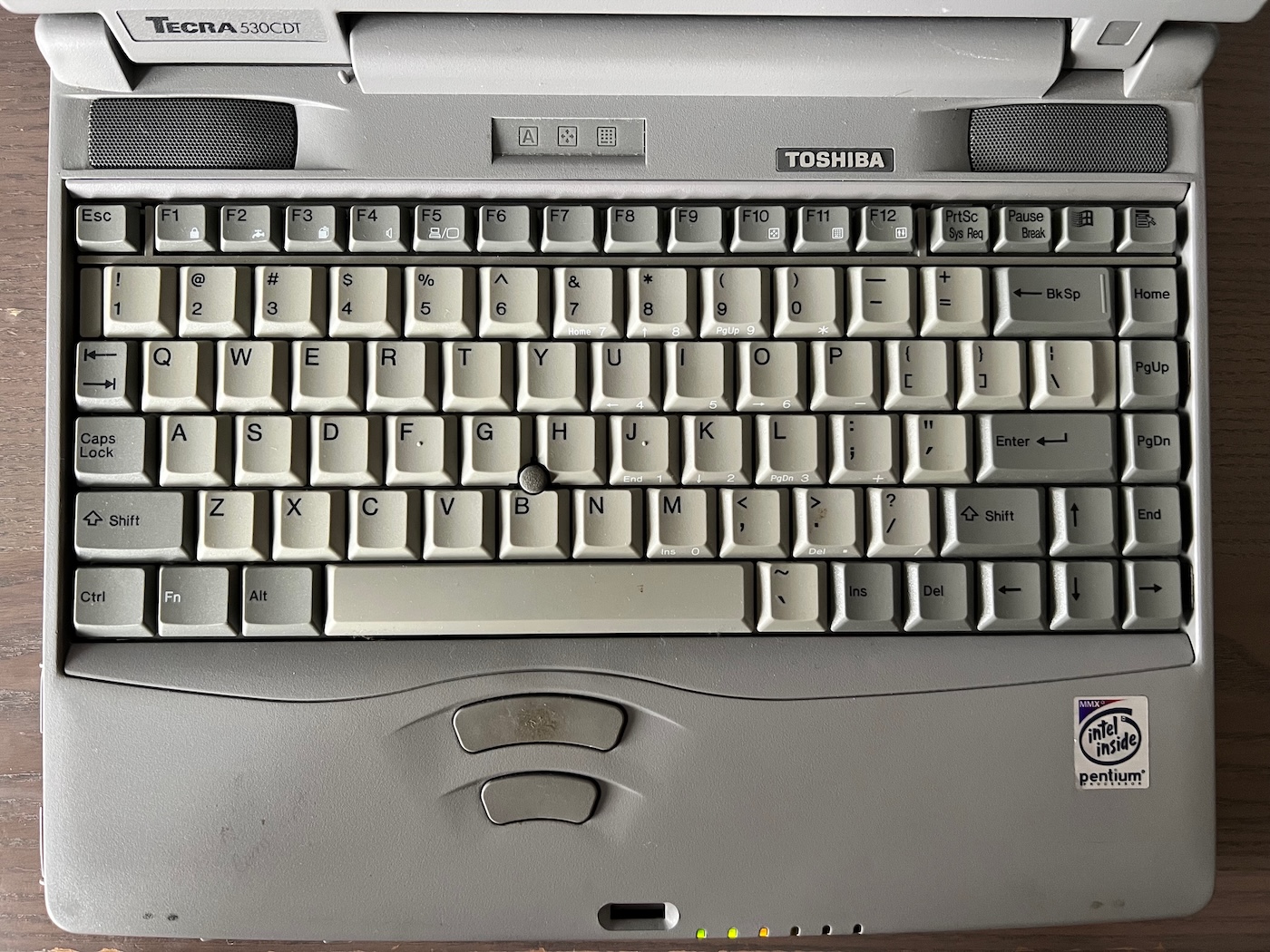 У меня точно есть ThinkPad 1999 и 1998-х годов, и вроде бы даже один постарше (не EPSON 1994-го, а реально IBM). Но тот, который постарше, сейчас в процессе апгрэйда его ламп подсветки LCD с cCFL (люминесцентных) на LED (не люминесцентных), поэтому покажу-ка вам свою Тошибу.